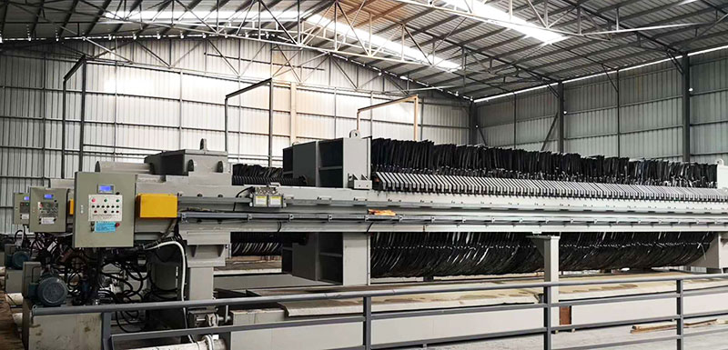 高干度,高產能,廢渣可壓榨至含水率30%以下,低至15%,比普通廂式壓濾機低10個點,比帶式壓濾機低15個點,配置我司兩臺XMYD1500-130PC-400廂式高壓壓濾機可滿足1000m3/d生產線的廢渣脫水需求。