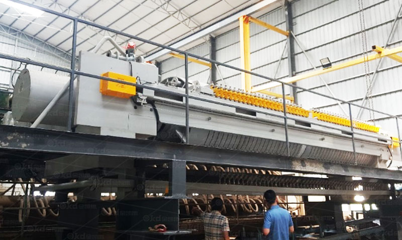 100平方污泥脫水壓濾機處理量有多少?壓濾機好廠家推薦。壓濾機作為污泥脫水設備,因其占地面積小、處理效果好、效率高、花費成本低等特點,迅速在污泥處理方面得到廣泛應用,那么該選用什么型號的壓濾機呢?下面金凱地壓濾機廠家就以100平方壓濾機為例,給大家介紹一下。