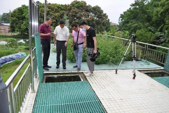 駐市生態(tài)環(huán)境局紀(jì)檢監(jiān)察干部與記者在高明區(qū)更合鎮(zhèn)調(diào)查農(nóng)村分散式生活污水處理情況。佛紀(jì)宣供圖